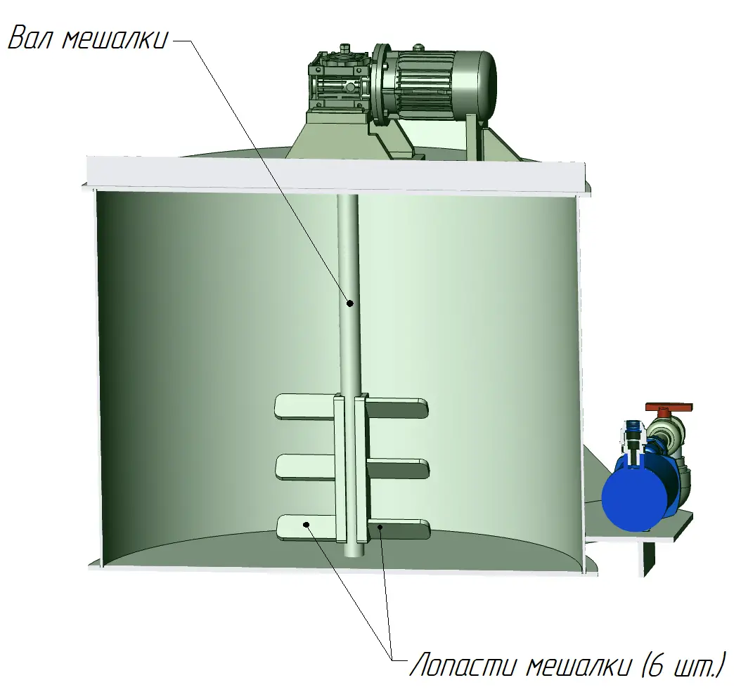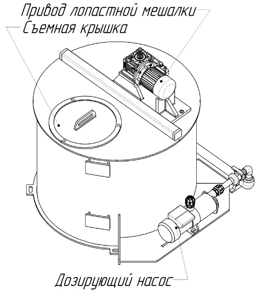Конструктивно изделие представляет собой емкость, оборудованную вспомогательной системой перемешивания и подачи готового раствора в технологическую ванну. При изготовлении емкости для приготовления технологических растворов учитывались требования ГОСТ 16310-80 «Соединения сварные из полиэтилена, полипропилена и винипласта». Изделие прошло технические испытания на стенде изготовителя.