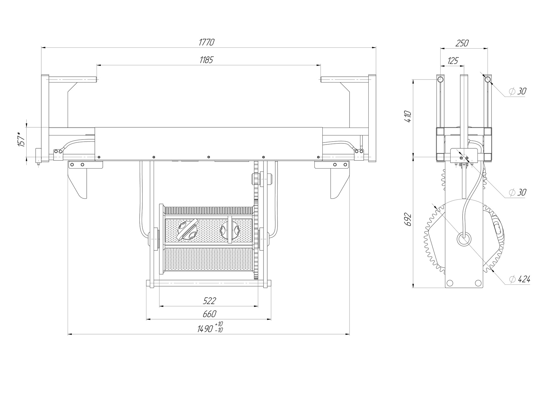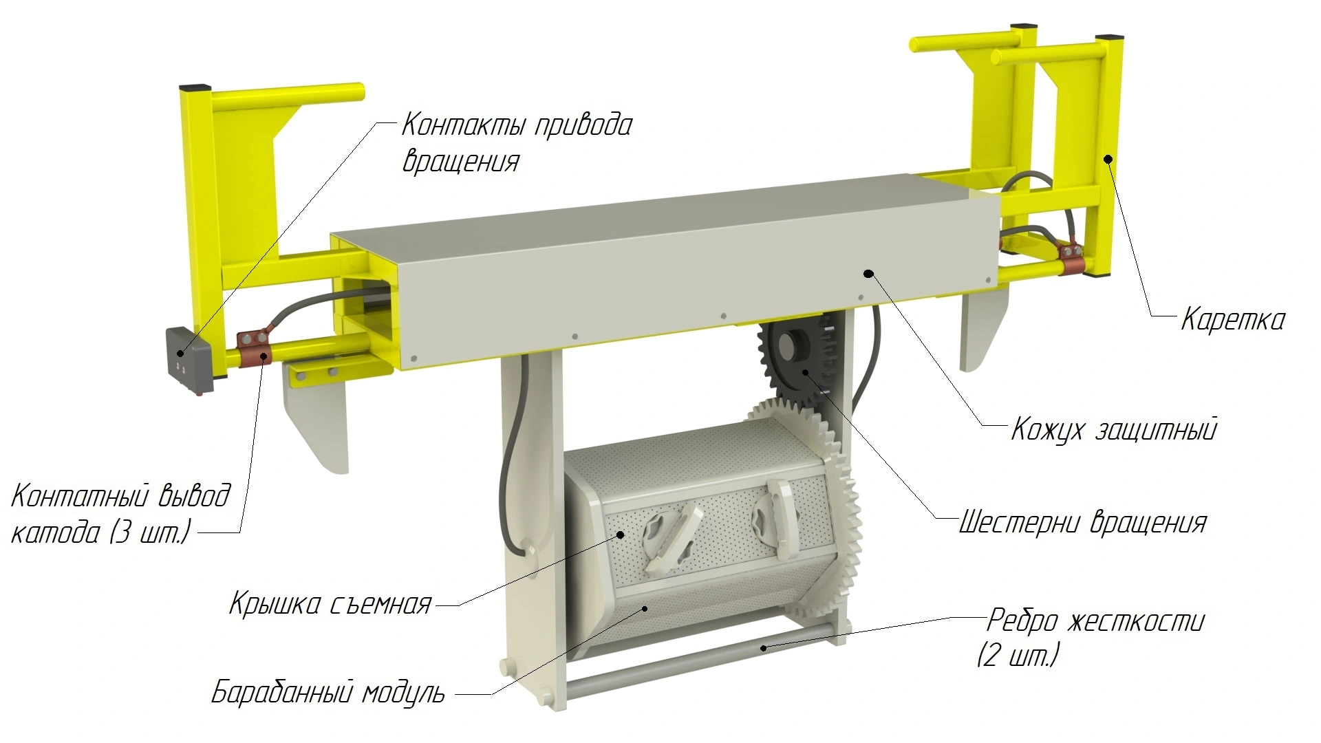 Гальванический барабан L1500_6 предназначен для подготовки поверхности и нанесения гальванического покрытия на мелкие детали путем погружения заполненного деталями изделия в технологические ванны длинной 1500 мм, а также для транспортировки деталей вдоль гальванических линий. Изделие представлено в 6-гранном корпусе: односекционный.