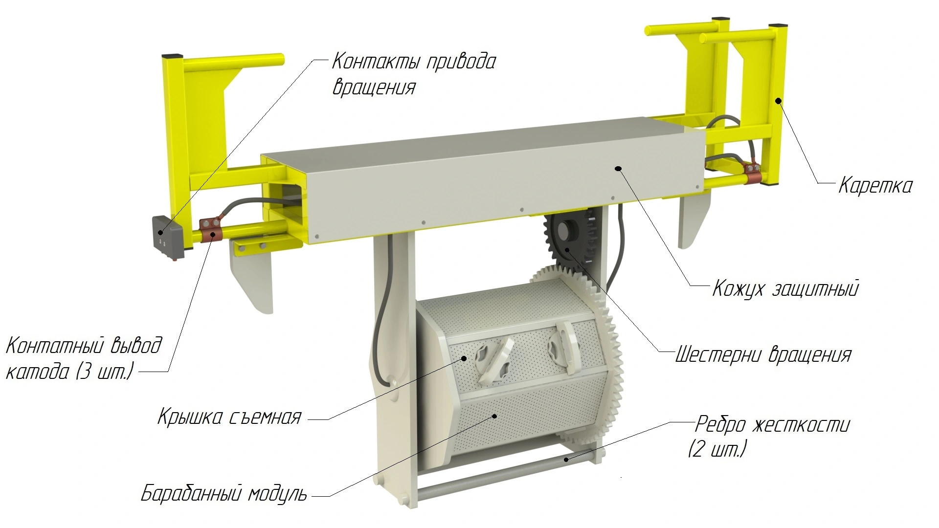 Гальванический барабан L1500_8 предназначен для подготовки поверхности и нанесения гальванического покрытия на мелкие детали путем погружения заполненного деталями изделия в технологические ванны длинной 1500 мм, а также для транспортировки деталей вдоль гальванических линий. Изделие представлено в 8-гранном корпусе: односекционный.
