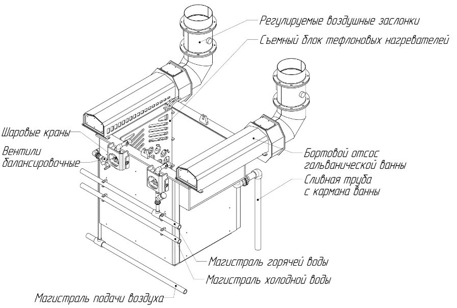Ванна горячей промывки предназначена для промывки деталей в горячей воде и может быть использовано для проведения промывной операции после любой технологической стадии в цикле подготовки и нанесения гальванического покрытия. Изделие обеспечивает безопасную работу на участке гальванопокрытий, при соблюдении правил и требований настоящего паспорта.