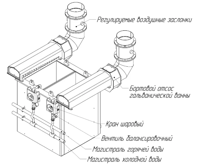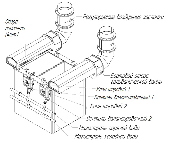 Ванна улавливания должна размещаться на специальных участках и в цехах заводов и промышленных предприятий, оборудованных приточной и вытяжной вентиляцией, водопроводом, канализацией, силовыми щитами, соответствующими Правилам техники безопасности и производственной санитарии при производстве металлопокрытий, правилам использования электроустановок. Помещение, в котором используется изделие, должно быть обеспечено общеобменной вентиляционной системой.