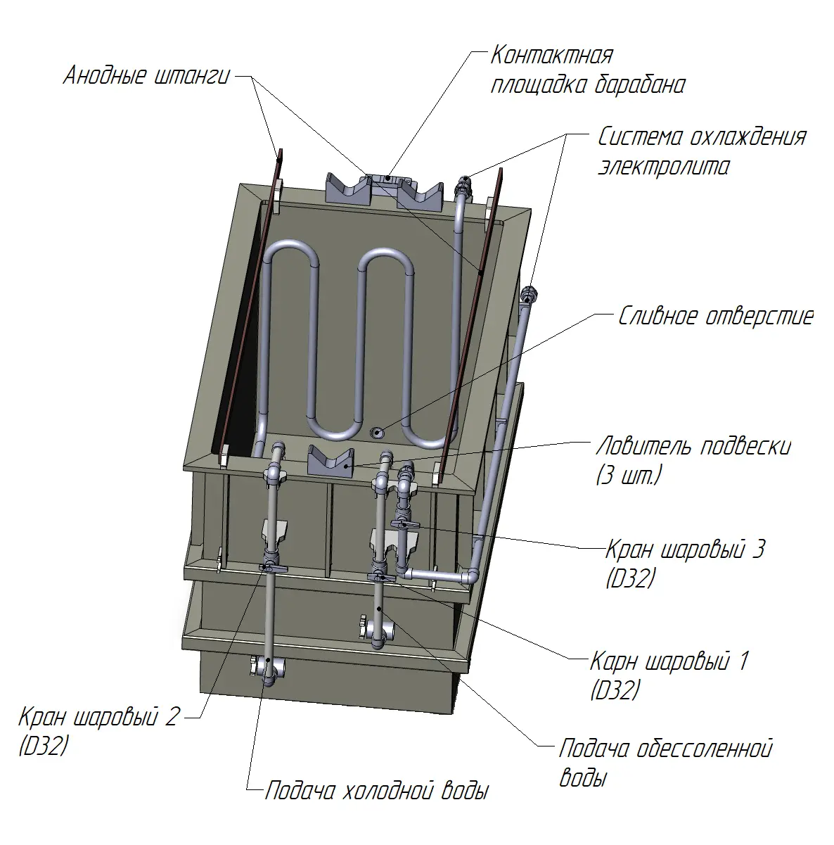 Ванна цинкования соответствует нормативным требованиям ТРТС 010 О безопасности машин и оборудования, регистрационный номер декларации о соответствии ЕАЭС N RU Д-RU.РА11.В.64345/24.