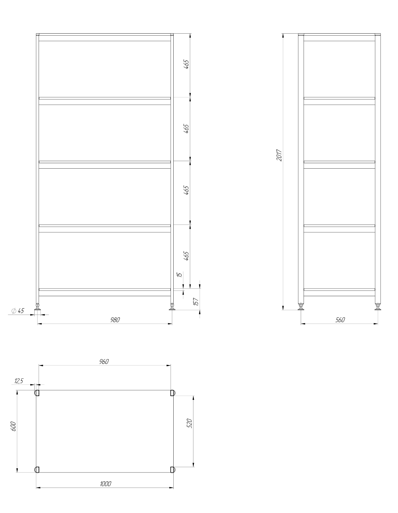В целях обеспечения химической и коррозионной стойкости стеллажа, полки выполнены из листов полипропилена, каркас выполнен из нержавеющей стали. Для удобства монтажа, стеллаж оснащен регулируемыми опорами.
