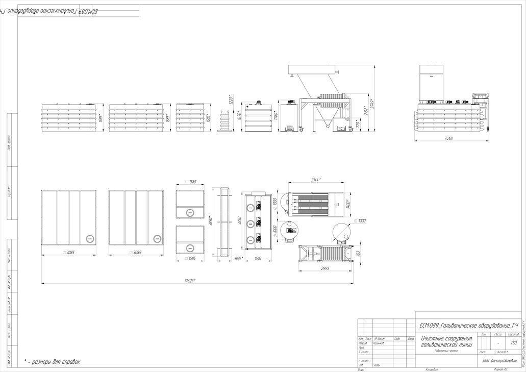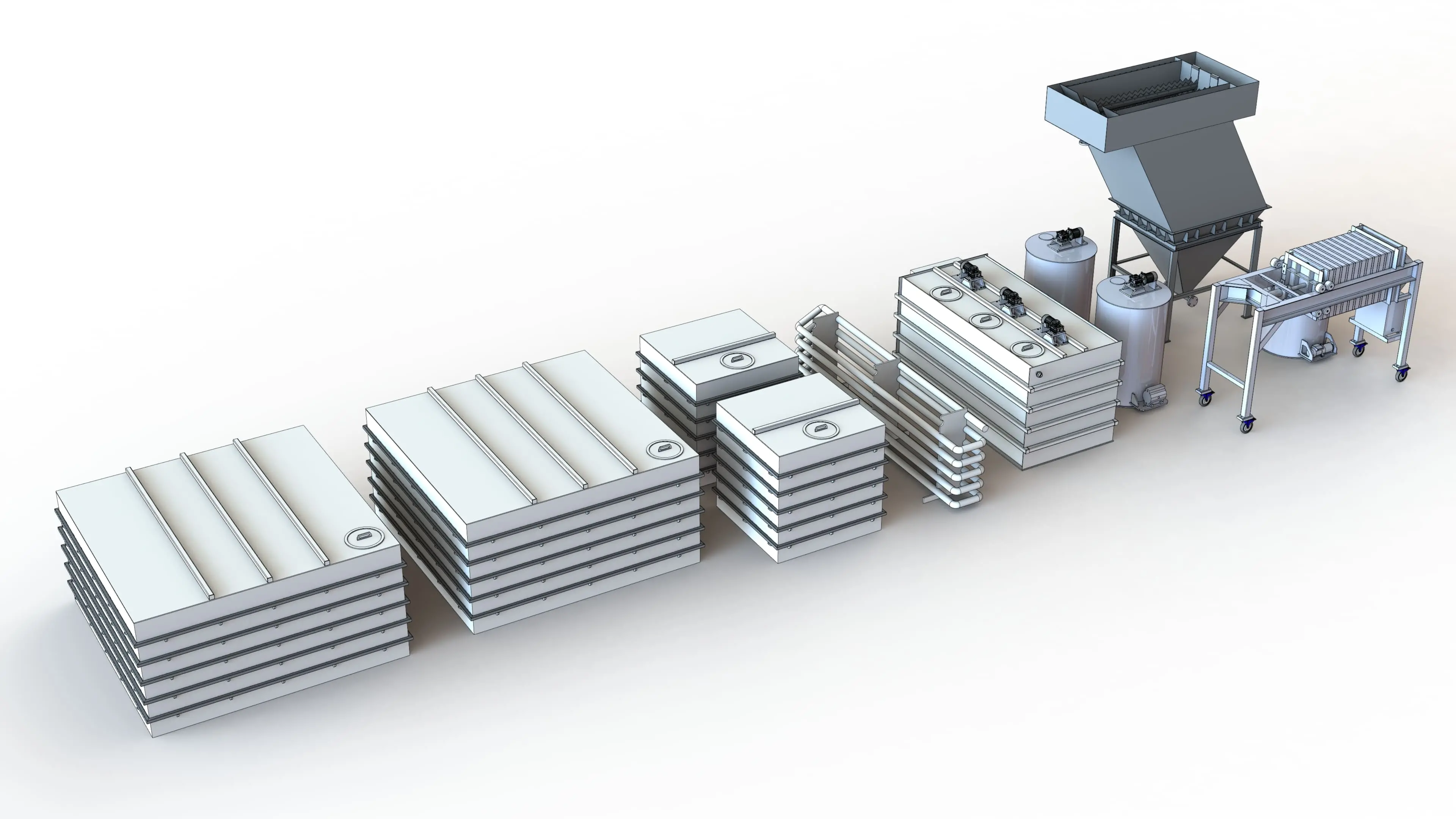 Предназначены для очистки сточных вод и концентратов рабочих растворов гальванических линий цинкования. Для концентратов предусмотрены накопительные емкости, накопленные концентраты обрабатываются постепенным дозированием в общие сточные воды. Вся вода за исключеним стоков с 6 валентным хромом обрабатывается в непрерывном режиме (очистные сооружения проточного типа). Стоки с 6-валентным хромом предварительно обрабатываются для восстановления хрома до 3-валентного.
