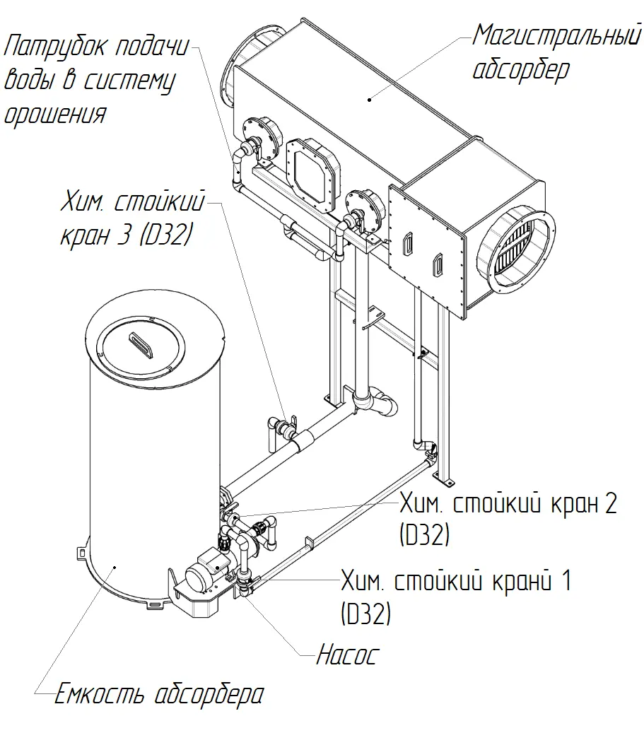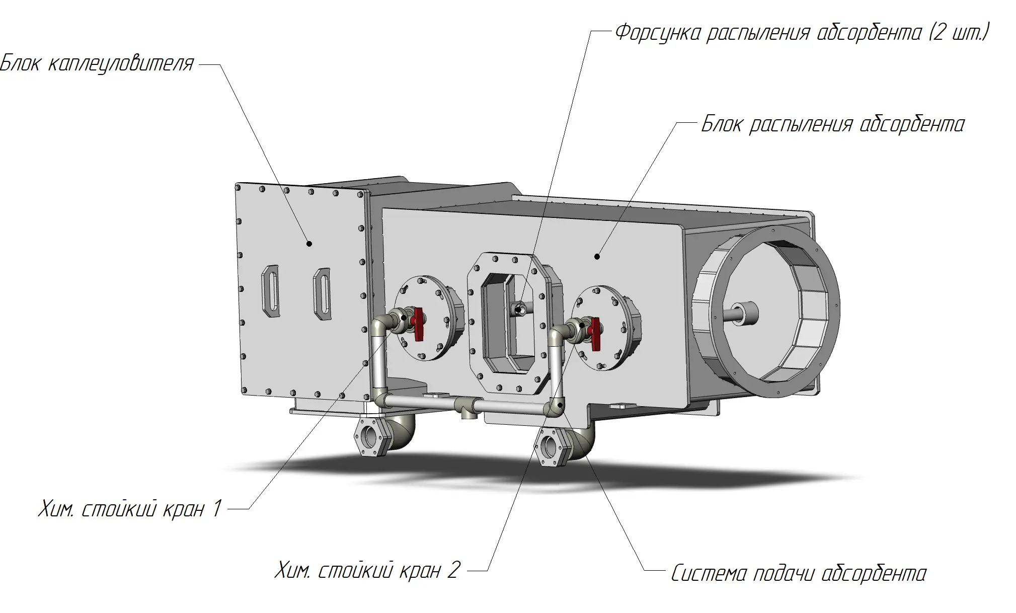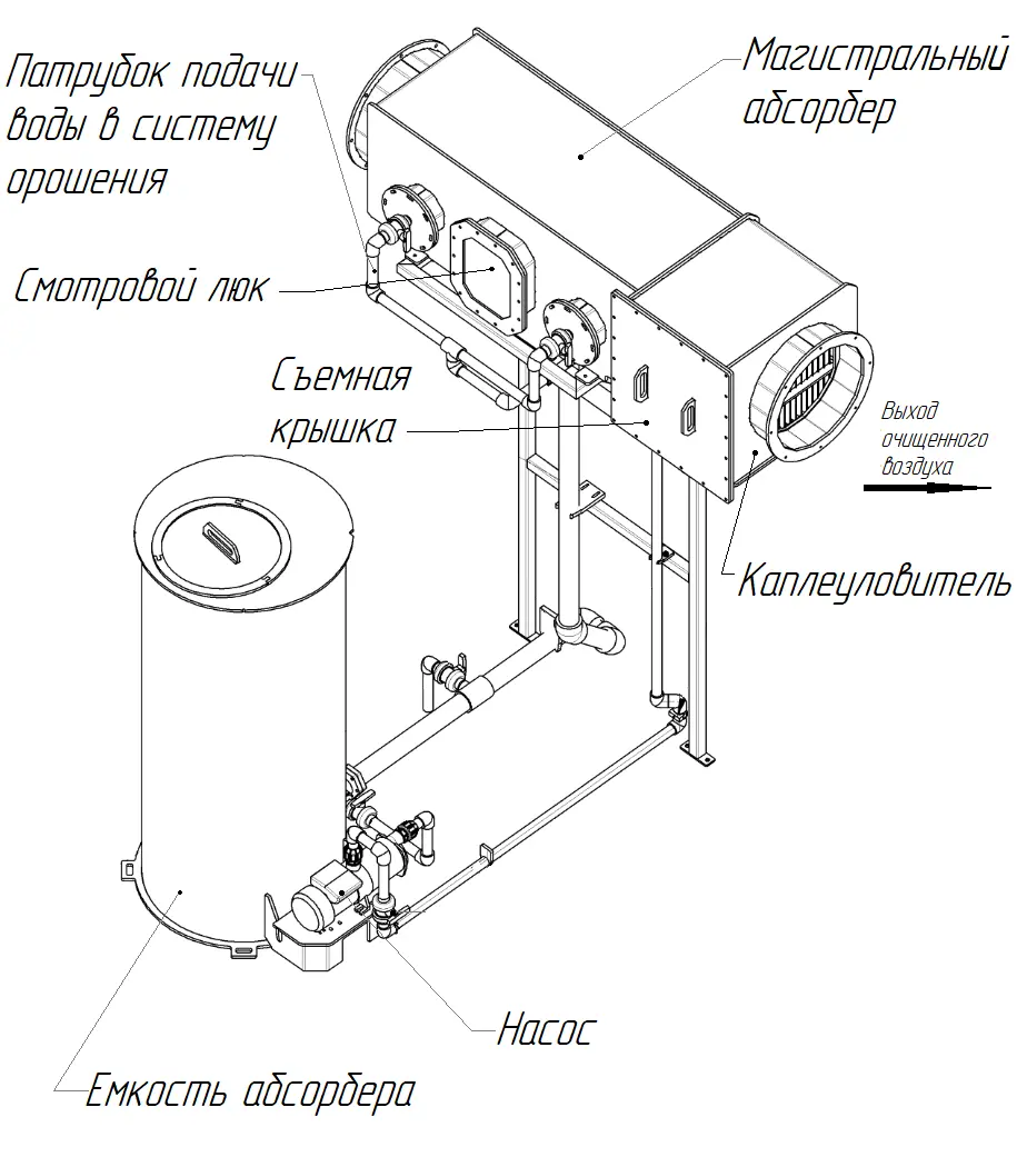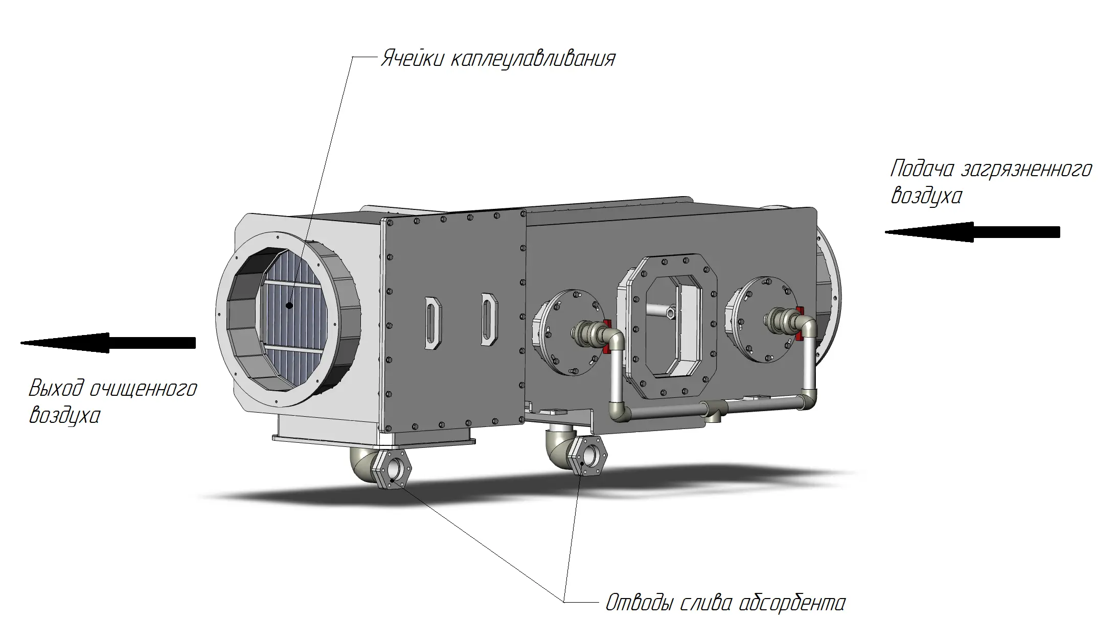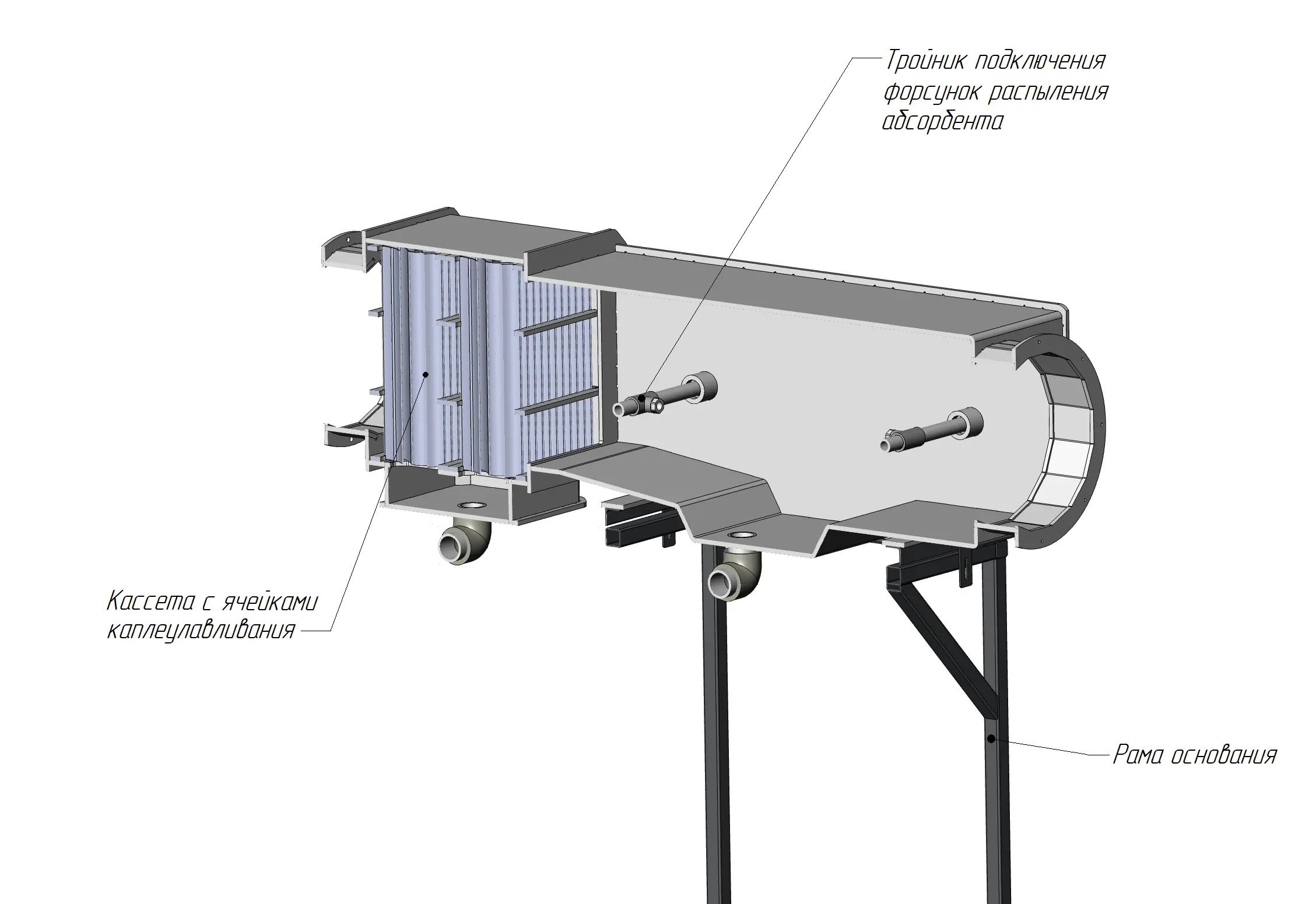 Абсорбер-400 предназначен для очистки воздуха, удаляемого от технологических ванн на участке гальванопокрытий местной вытяжной вентиляцией: кислотных, щелочных и иных испарений методом абсорбции (поглощения) загрязнений абсорбентом с образованием водного раствора загрязнений в накопительной емкости. Изделие обеспечивает безопасную работу на участке гальванопокрытий.